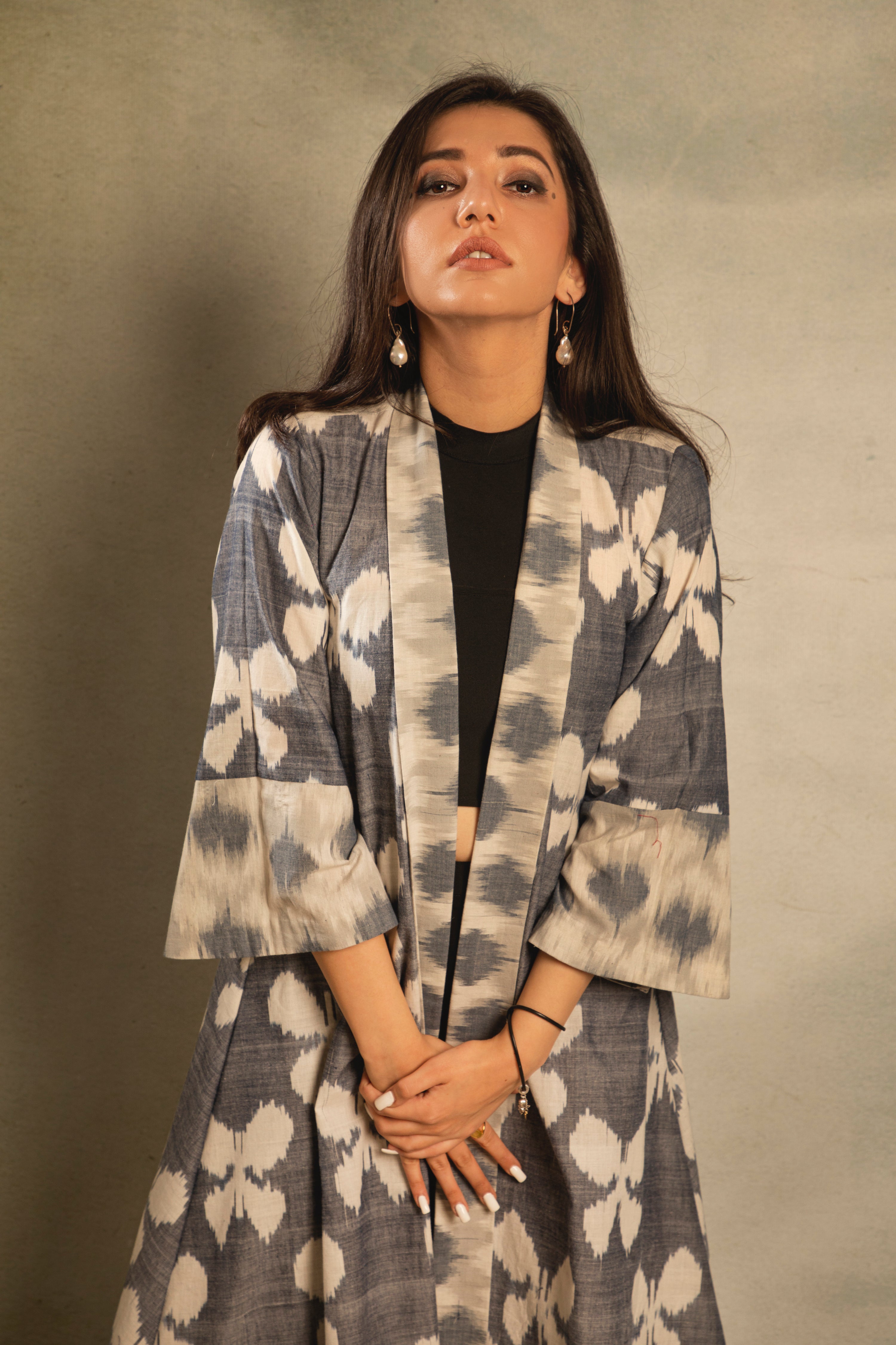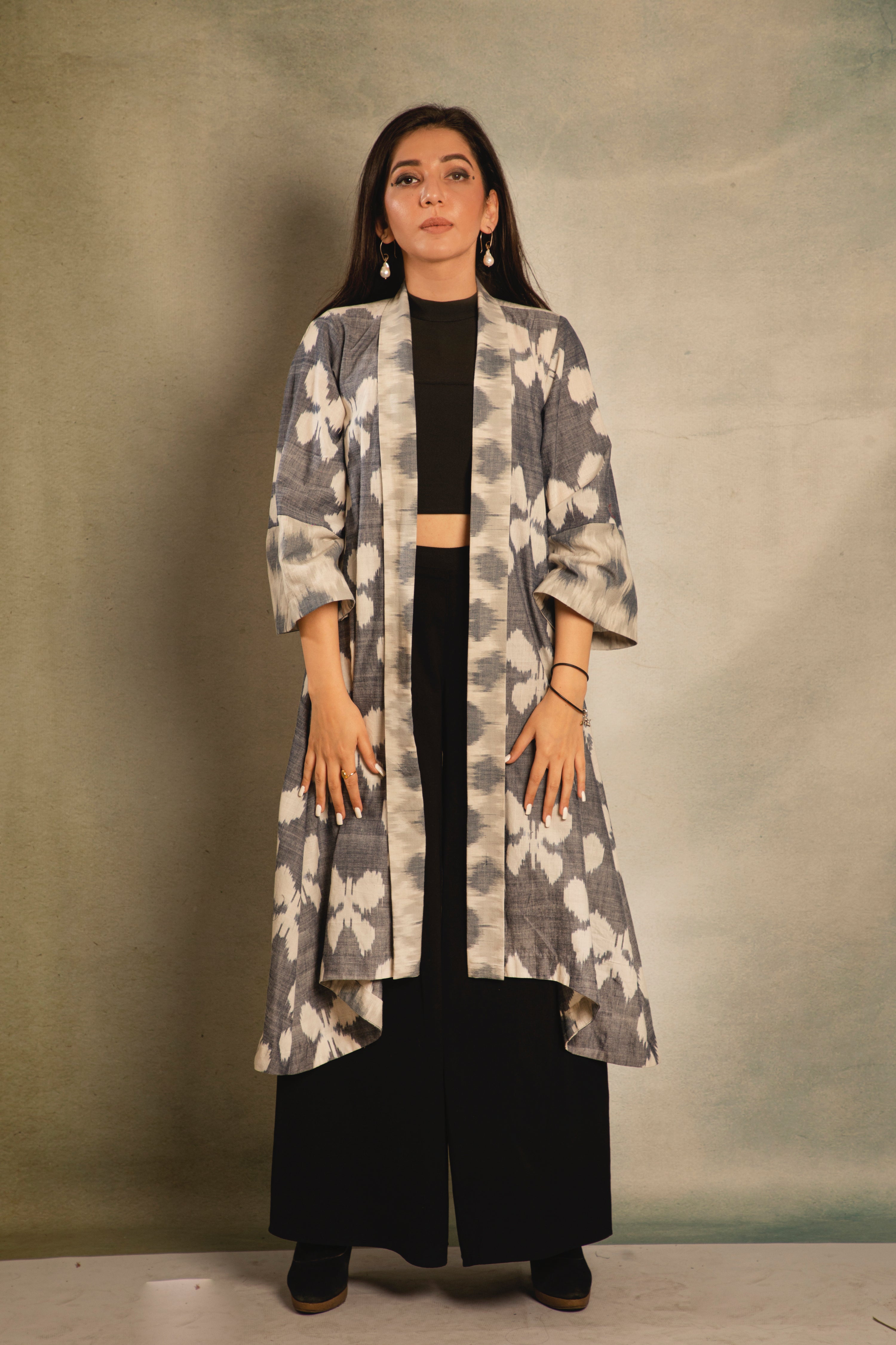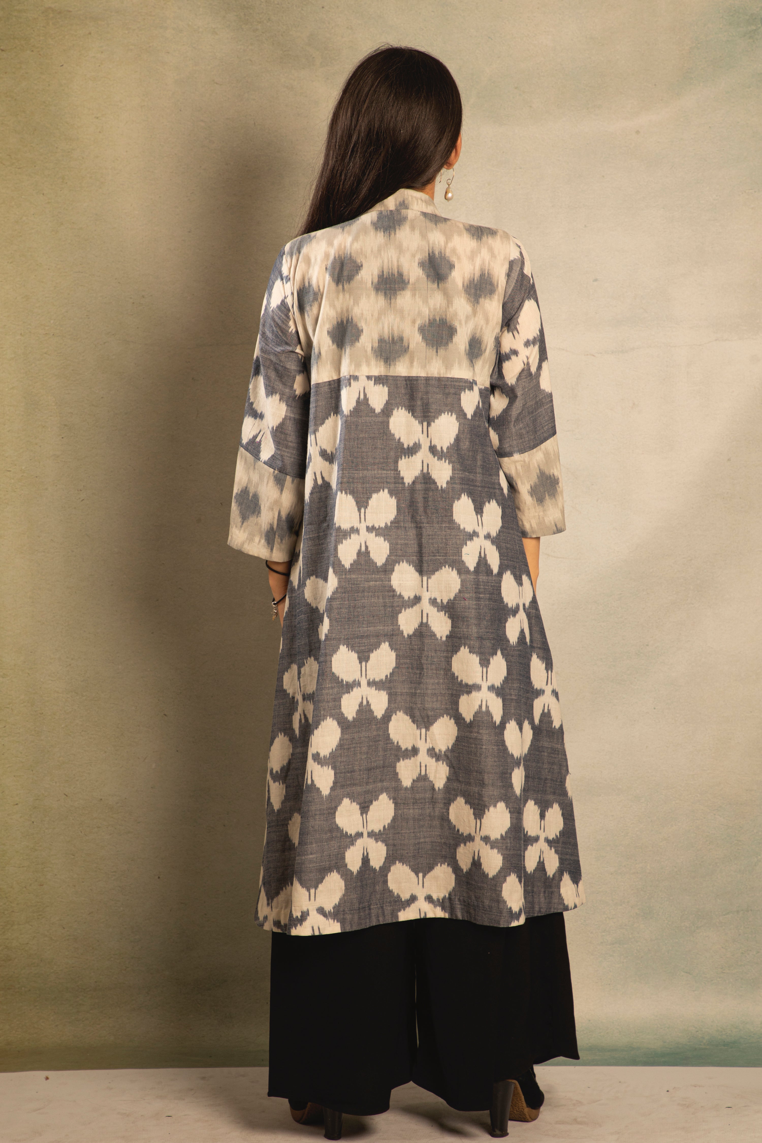 Grey ikat jacket with a butterfly weave