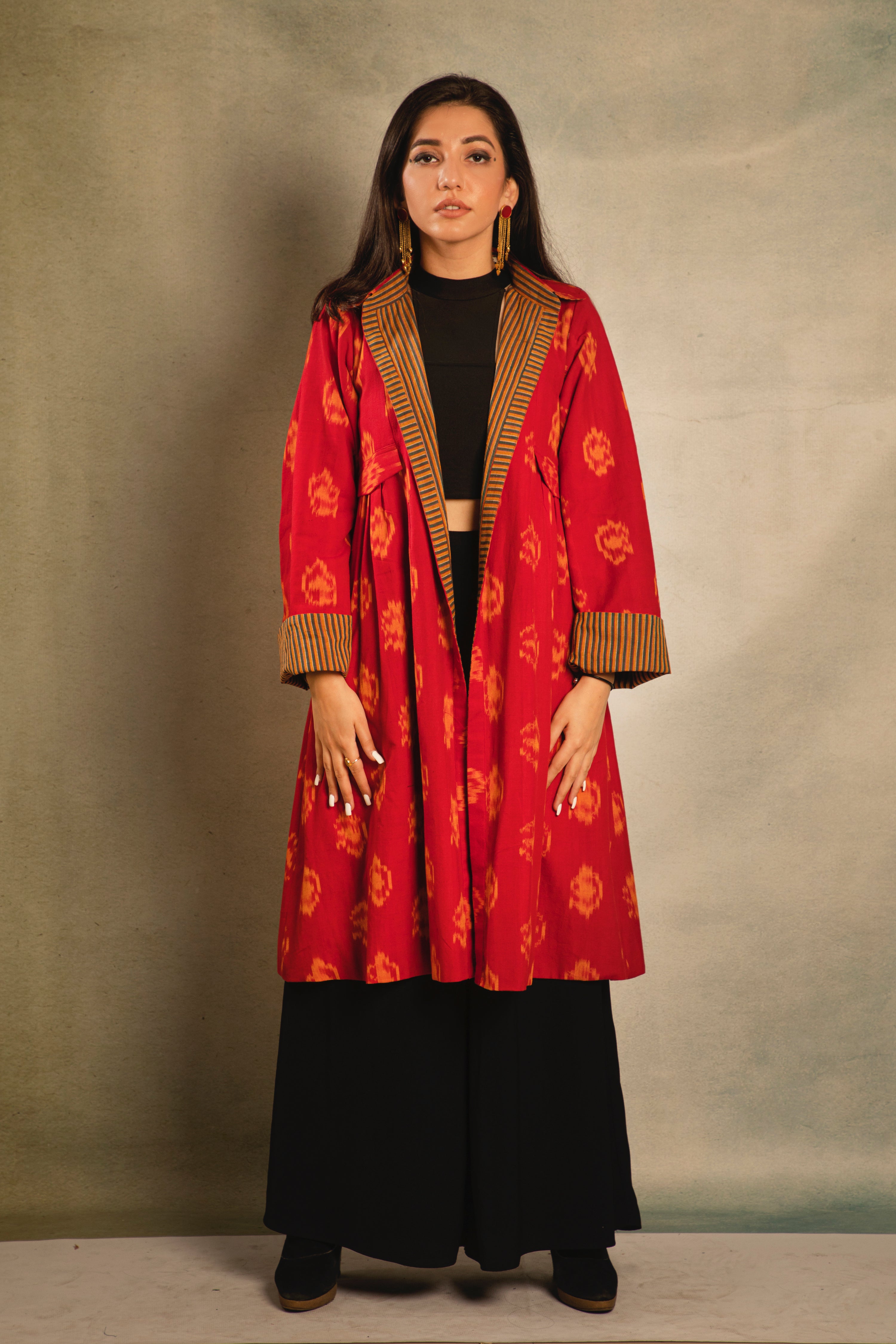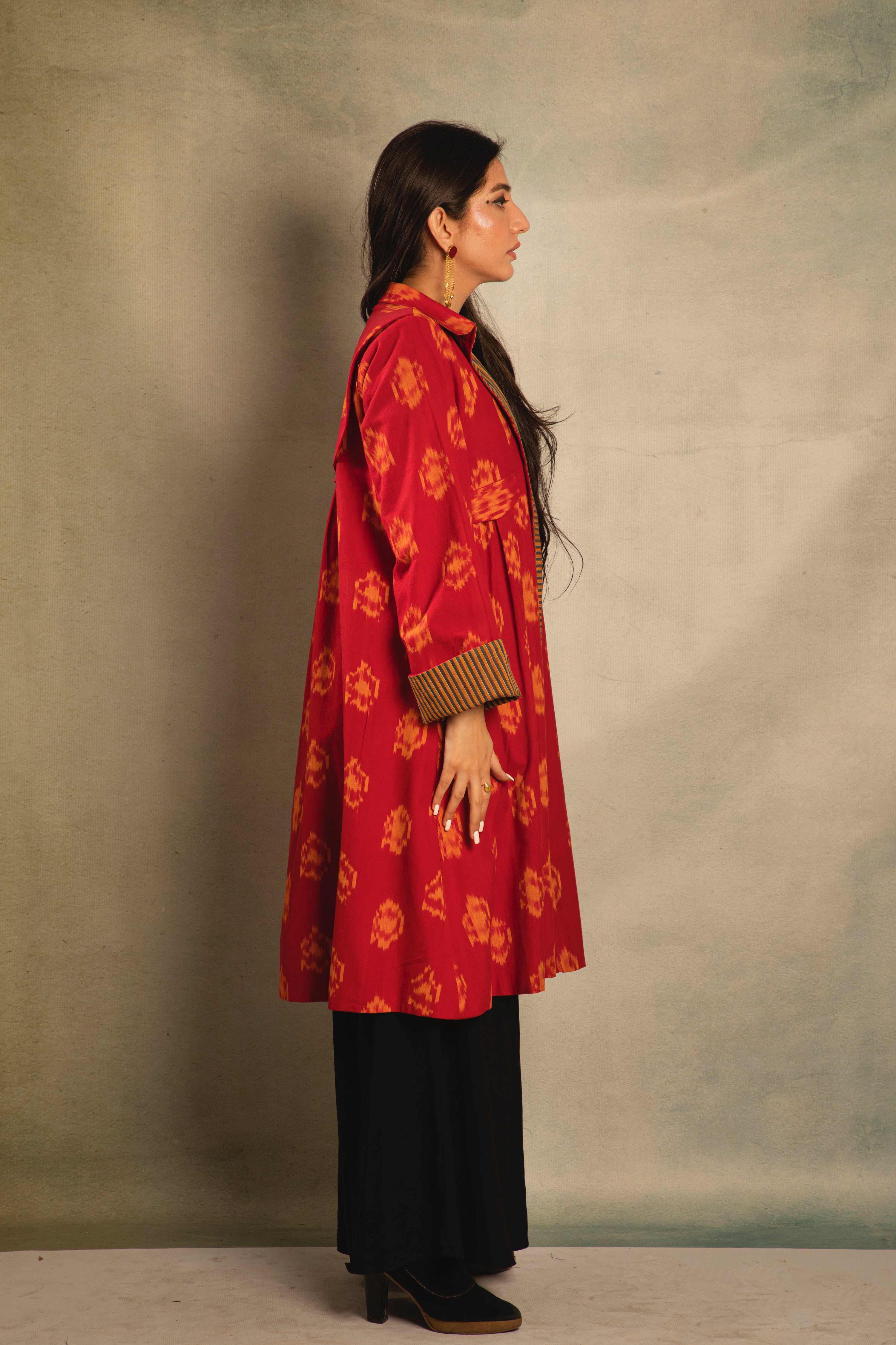 Red and mustard ikat reversible jacket