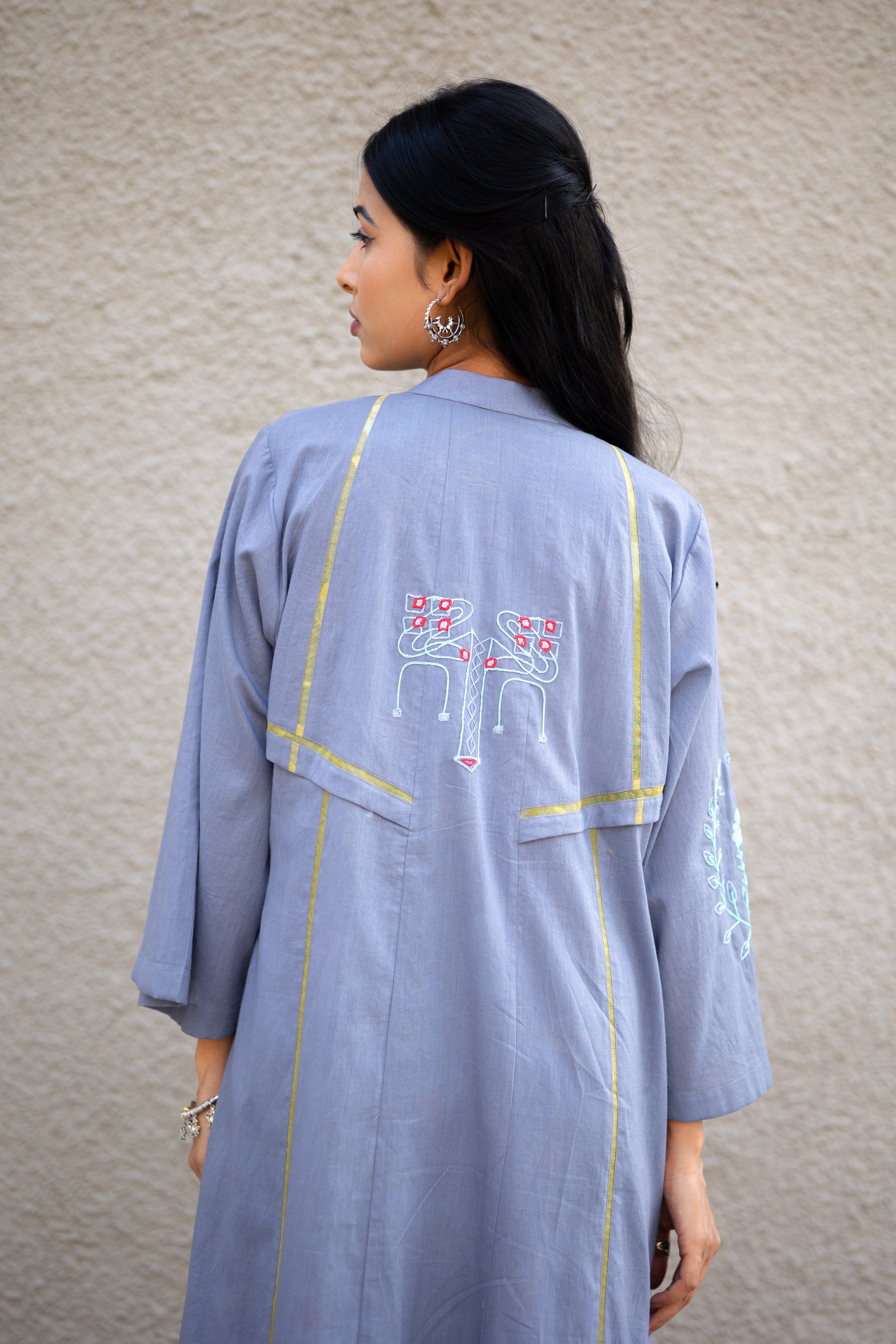 - Mid length overlay which can be worn over an inner or over a t-shirt with jeans.